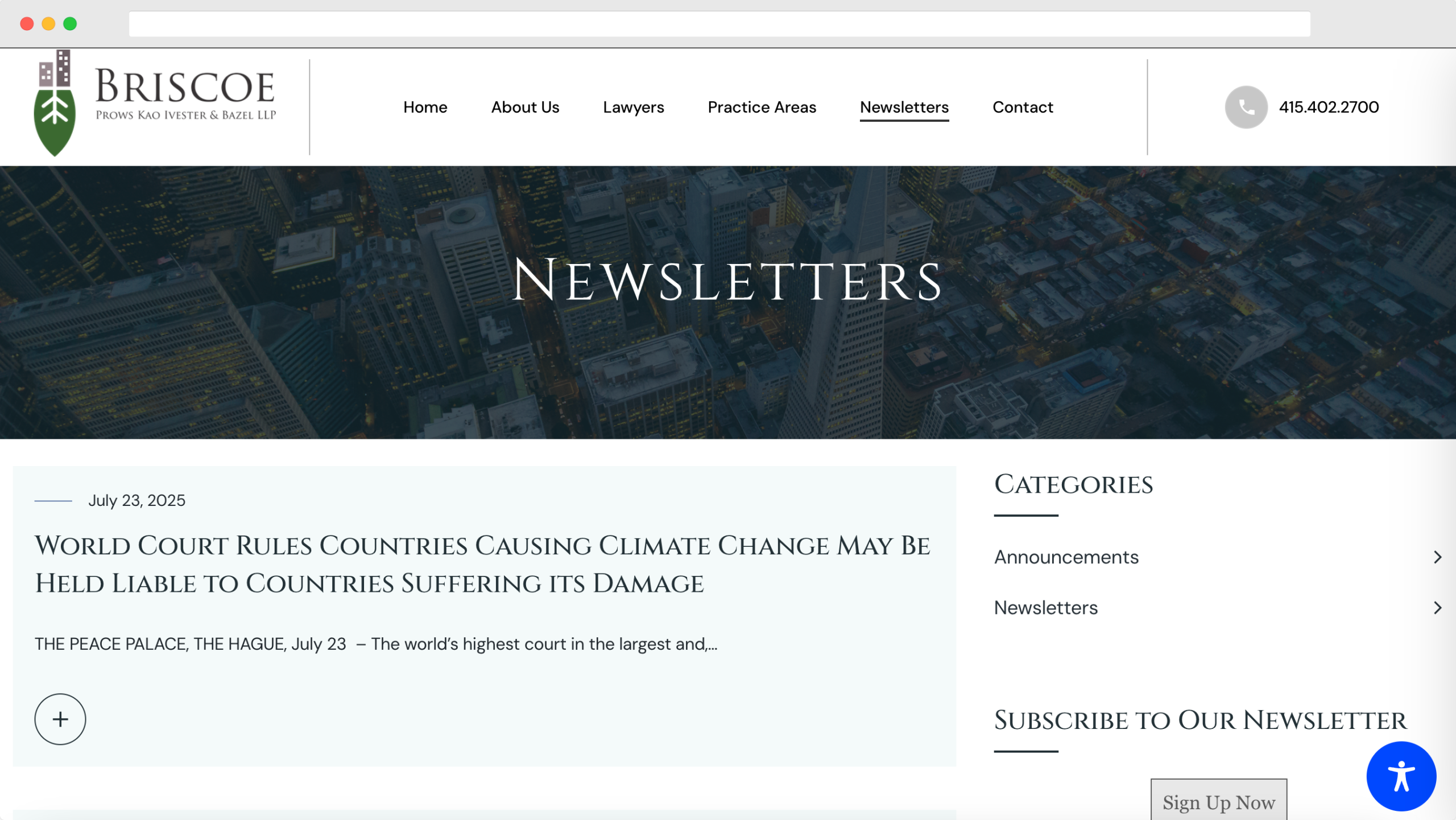 Briscoe Prows Kao Ivester & Bazel LLP needed a modern online presence that reflected their depth of expertise, elevated their reputation, and improved accessibility for prospective clients. Their previous site was outdated and lacked the content needed to showcase their attorneys, services, and thought leadership.