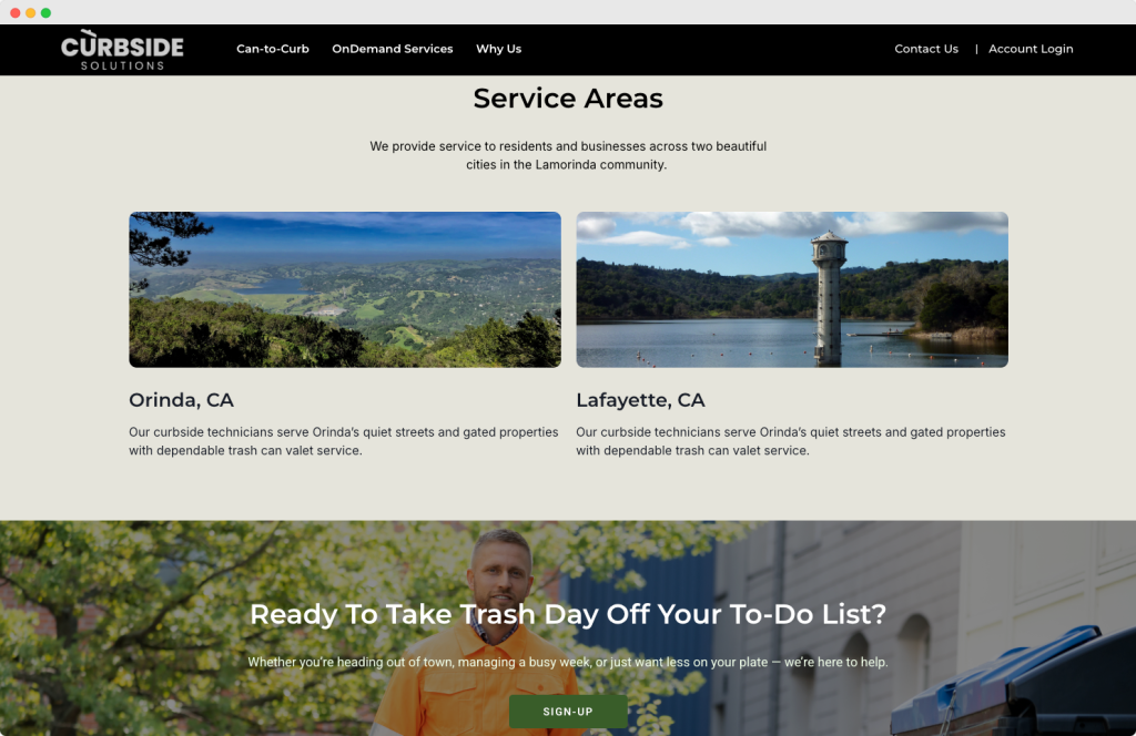 Curbside Solutions came to Tenaya360 as a startup in need of a digital presence that could serve as both a marketing engine and an operational platform. They needed a website that would attract customers, explain services clearly, and handle the entire subscription process seamlessly.